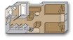 Large Oceanview Stateroom (Porthole Window) 两张单人床可拼成一张大床,浴缸和淋浴间。所有该舱房都有舷窗