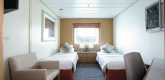 Single Outside Cabin 一张单人床和一间带卫生间和淋浴的配套浴室。舷窗或落地窗,空调•吹风机•平板电视•衣柜空间•茶叶和咖啡制作设施•安全