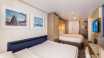 *该房型2人入住1间阳台双人房(请确保至少有1位旅客年满18周岁),第三人(必须为18岁以上成人)需与其他客人拼另外一间阳台双人房。 两张单人床可合并成一张大床。另有一张双人沙发床。房间内有梳妆台,休息区有沙发。一间浴室。 *该房型7楼部分房间阳台下方悬挂救生艇,13楼部分房间阳台上方延申遮阳顶棚,平视无遮挡。船司无遮挡房型定义是指:从窗户/阳台直接向外观(即站在阳台边上平视出去的视线范围内)看水平视线范围内无遮挡物。