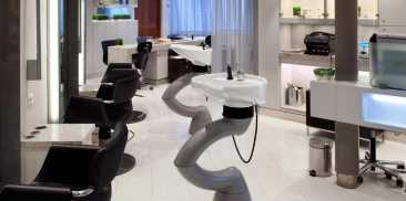 提供全方位服务的美容沙龙以及所有传统沙龙服务,包括发型设计,剪发和上色。包括结合了治疗性冷却凝胶的火与冰修甲和修脚,以及用加热的石头进行理疗的温暖感。足部护理是一种使用温暖的芳香疗法精油和乳蛋白衰老的复兴疗法。或者,您可以尝试在大溪地使用了数百年的素馨花护发和头皮护理霜,以软化皮肤和头发。